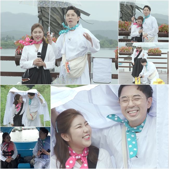이어 두 사람이 “춘천에 놀러 왔다 기차가 끊겨 성사된 커플이 많다”는 이야기에 서로의 눈을 피한 가운데, 붐은 “춘천은 사랑하는 사람과 오고 싶은 곳”이라고 설렘을 표현하는가 하면, 송가인은 “처음 왔는디 이래서 많이 왔구먼”이라는 의미심장한 말들을 내뱉어 현장에 묘한 분위기를 조성했다. 더욱이 붐은 비 오는 날이면 영화 ‘클래식’을 재연해 보고 싶었다며 송가인과 함께 두루마기를 머리 위에 쓴 채 빗속을 달리는 명장면을 선보였고, 뽕남매가 붐인성과 송예진으로 변신하는 ‘핑크빛 무드’에 제작진은 의심의 눈빛을 드리우기도 했다.