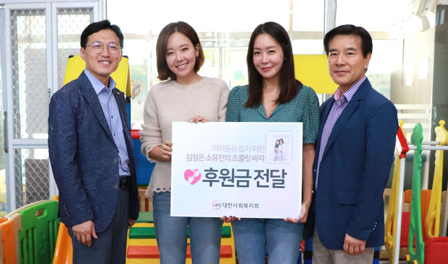 사회복지법인 대한사회복지회(회장 윤점식)는 김정은과 소유진이 실시한 초콜릿바자 후원금을 대한사회복지회에 전달했다고 25일 밝혔다.