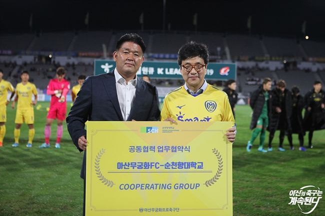 아산무궁화프로축구단(구단주 오세현)이 순천향대학교와 ‘공동협력 업무협약’을 체결했다.