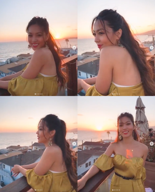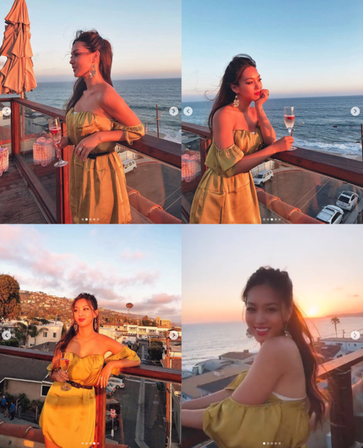 김희정은 24일 자신의 인스타그램에 여유를 만끽하고 있는 영상과 사진 여러 장을 올렸다. 영상에서 김희정은 바다를 내려다보며 난간에 기대어 있다. 카메라를 보며 활짝 웃는 미소는 보너스.