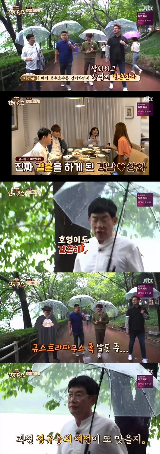 석촌호수를 걷던 이경규는 "예전에 여기 석촌호수를 걸으면서 강남과 상화가 결혼한다라고 예언을 했다"라고 말했다. 이에 강호동은 "우리 호영이는 어떠냐"고 물었다. 이경규는 "호영이도 결혼한다. 앞으로 2년 안에 한다"라고 말해 관심을 집중시켰다.