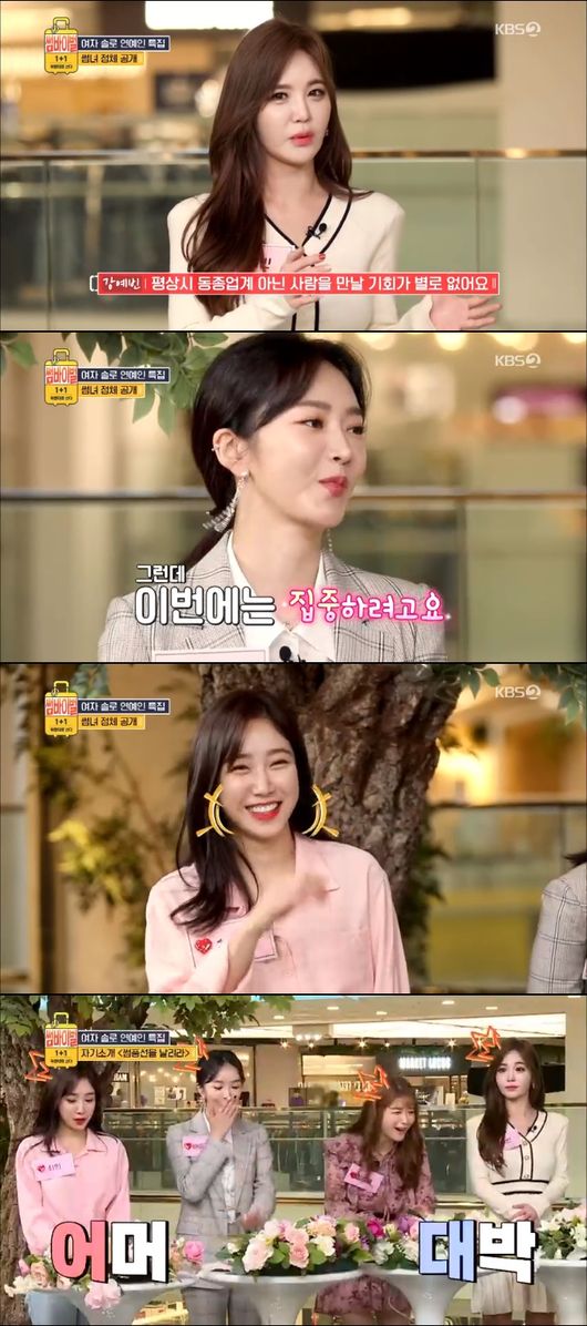 25일 오후 방송된 KBS2 예능 프로그램 ‘썸바이벌 1+1’은 연예계 대표 솔로녀 특집으로 꾸며져 ‘썸’을 향한 썸녀들과 썸남들의 고군분투가 그려졌다.