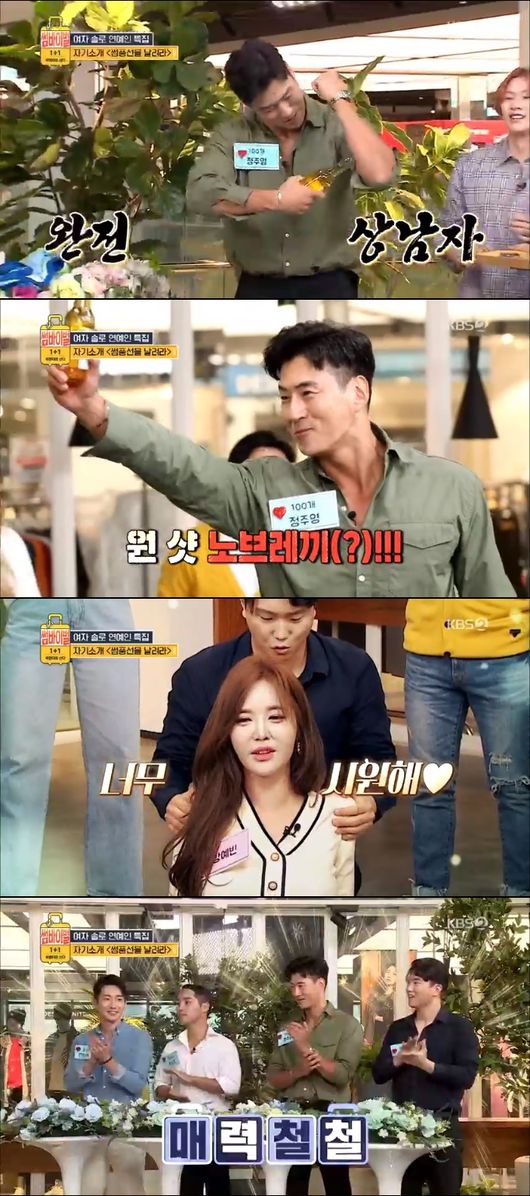 부산에서 순대국밥집을 운영한다는 정주영은 전국에 프랜차이즈 100개를 운영한다는 의미에서 ‘100개’ 정주영이라고 자신을 소개했다. 그는 초콜릿 복근을 공개하면서 독특한 병따개 기술과 유쾌한 매력으로 웃음을 선사했다. 서초동에서 한의원을 운영 중인 ‘한의사’ 박호영은 목과 허리가 아프다는 강예빈을 위해 즉석에서 치료법을 보여줘 호감을 샀다.