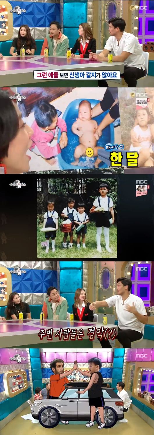 이어 모두 자연분만이었다고 말해 모두를 경악하게 만들었다. 이어 사진이 공개됐다. 사진을 보며 모두들 "신생아냐?"며 놀라워했다. 유치원 동기들보다 2배나 큰 모습의 하승진을 보며 인솔 교사 같다. 이거 진짜 재밌다고 말했다.