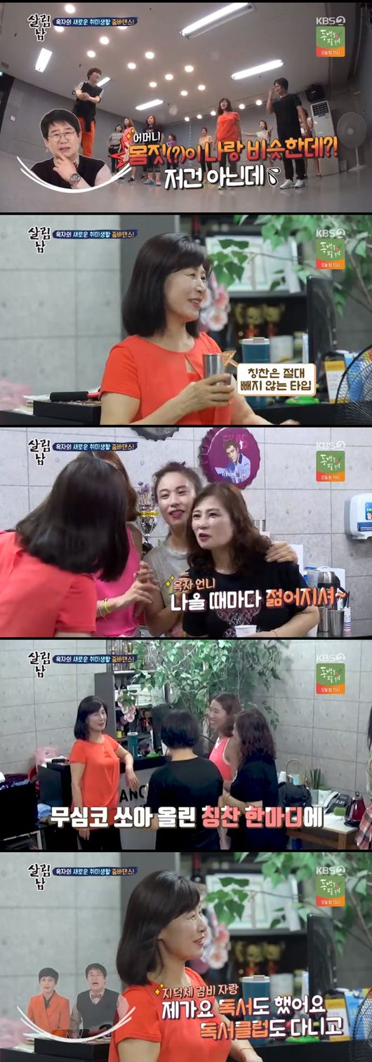 이날 김승현의 어머니는 새로운 취미생활로 줌바댄스에 나섰다. 어머니는 서툰 솜씨로 줌바댄스를 선보여 웃음을 자아냈다. 줌바댄스가 끝난 후 회원들이 김승현의 어머니에게 모여들었다.