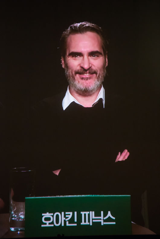 호아킨 피닉스는 "다양한 질문을 해줘서 정말 감사하다. 우리가 직접 한국에 갔으면 좋았을 텐데, 여러분들의 반응이 정말 좋다. 화상으로 기자회견을 진행한 적이 없었는데, 정말 감사하다"고 했고, 감독은 "영화에 대한 기대감이 느껴져 감사하고, 전 세계적으로 그랬던 것 만큼 한국의 관객들도 극장을 나갈 때 기억에 남을만한 것을 가지고 떠나시면 좋겠다. 곧 한국에 방문할 수 있길 바란다"며 미소를 지었다.