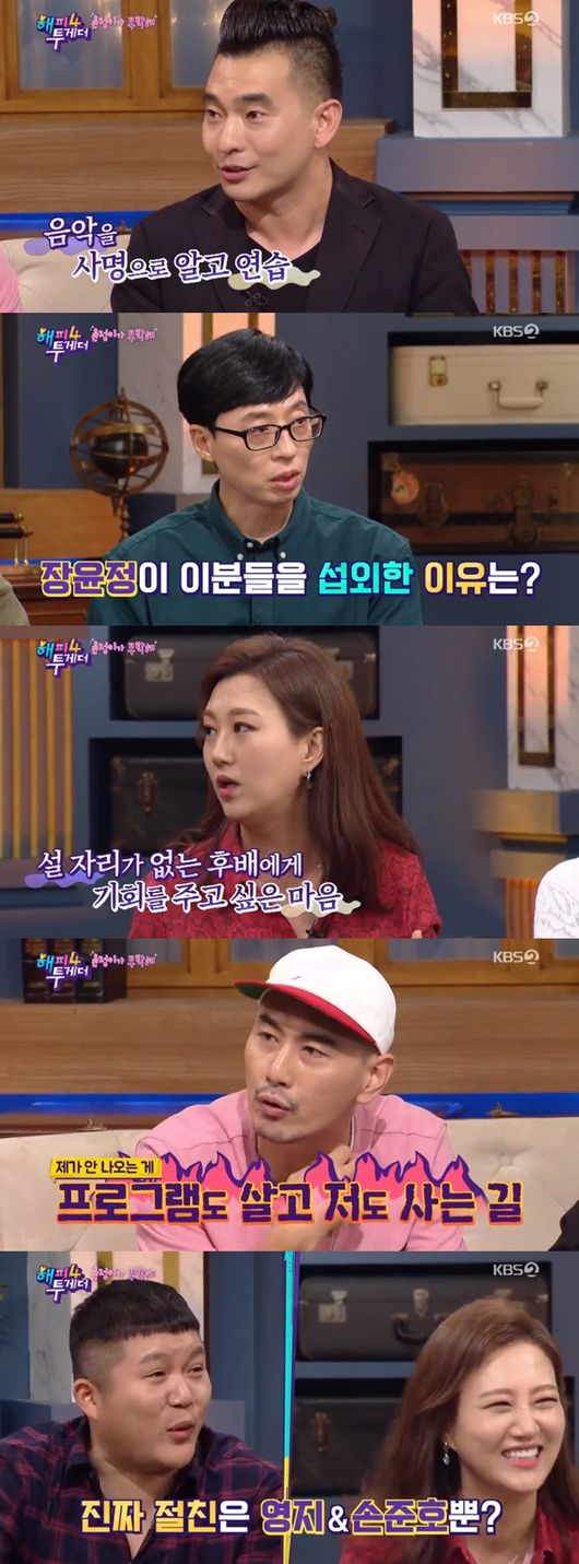 26일에 방송된 KBS2TV '해피투게더4'에서는 '윤정이가 부탁해' 특집으로 꾸며진 가운데 손준호, 대니정, 문명진, 영지가 출연해 입담을 전했다.