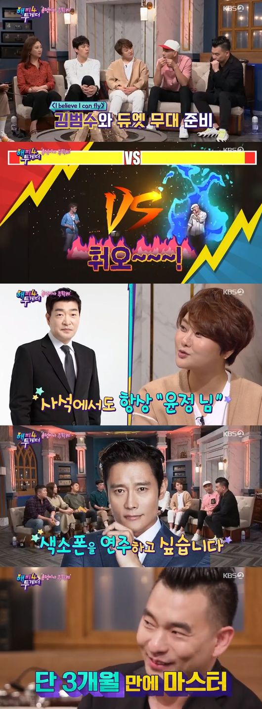 문명진은 "끝나고 나서 둘 다 좋은 척 했다. 근데 난 너무 부끄럽다. 범수도 많이 반성할 것"이라며 "영어도 잘 못하는데 말도 안되는 영어도 했다. R&B의 특성상 좋게 얘기하면 잼인데 나쁘게 얘기하면 멕이는 거다"라고 말해 주위를 웃음바다로 만들었다.