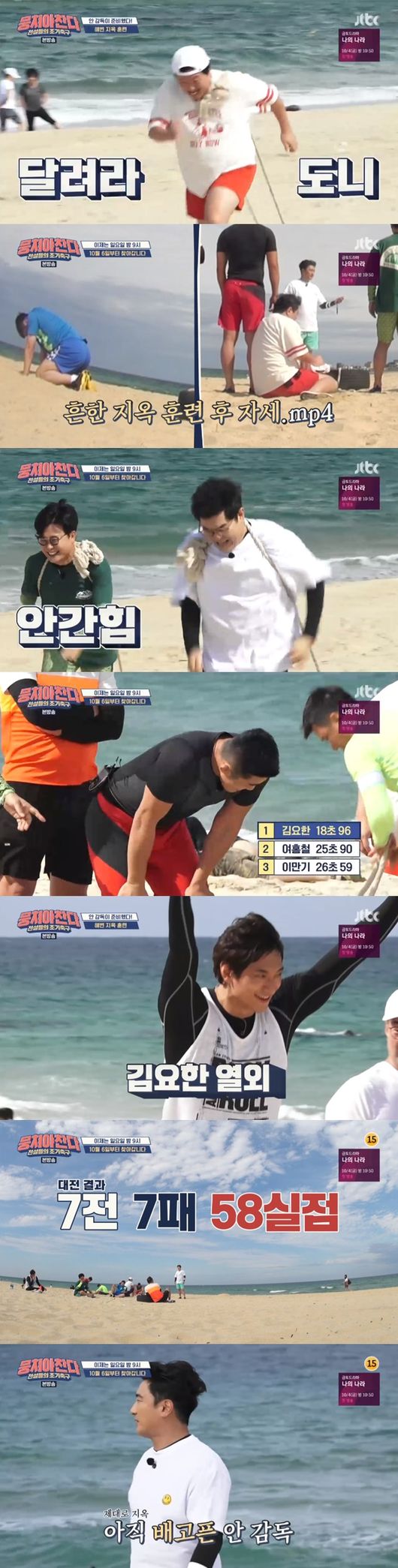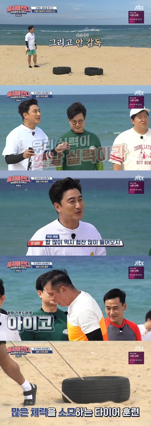 지난 26일 방송된 JTBC'뭉쳐야 찬다'에서는 바캉스를 가자고 말한 뒤 해변 지옥 훈련을 시키는 안정환의 모습이 그려졌다.