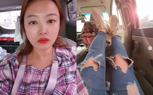 함께 게시한 사진에서 심진화는 차에 앉아 여유를 만끽하고 있다. 무표정한 얼굴이지만 앞 좌석에 편하게 다리를 올리고 있는 모습에선 한가로움이 느껴진다. 다이어트에 성공한 늘씬한 다리라인은 보너스다.