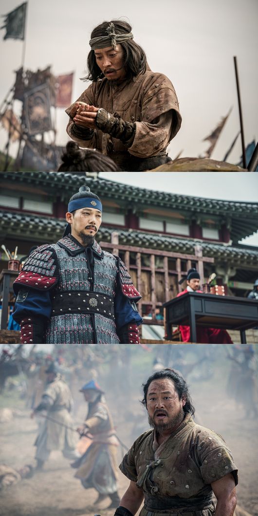 그런가 하면 강렬한 포스의 ‘박치도’로 분한 지승현의 모습도 눈길을 끈다. 상처 난 얼굴 속 날카로운 눈빛과 차가운 카리스마는 그의 사연에 궁금증을 자아낸다. 여기에 지옥 같은 전쟁터에서 맹활약하는 이유준의 모습도 포착됐다. 단단하고 힘 있는 아우라를 뿜어내는 그는 ‘정범’으로 변신해 존재감을 드러낸다. 격변의 시기, 역사의 뒤편에 존재했던 이들을 자신만의 개성으로 그려나갈 세 사람의 활약이 기대심리를 자극한다.