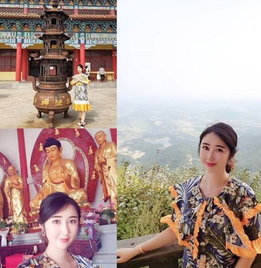 이어 "내년에 황금이 데리고 갈게요. #중국 #후난 #타이푸산 #경치 #불교사원 #소원 불상 #광동성 #선전 #구름 #일상 #임산부 #성은채 #china #mountain #daily #temple"이라는 글과 함께 사진을 남겼다.
