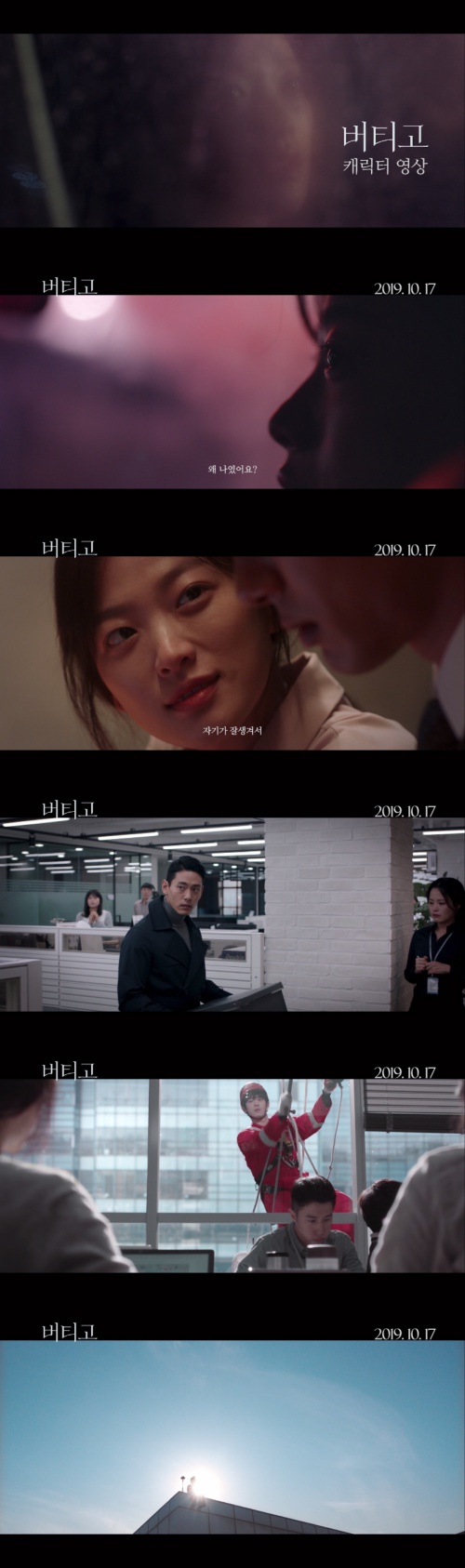 이번에 공개된 '버티고'의 캐릭터 영상은 ‘현기증 나는 고층 빌딩, 안아주고 싶은 사람들의 이야기’라는 카피로 시작되어 각각의 캐릭터에 대한 궁금증을 더한다. 먼저 서른의 얼굴 서영으로 분한 천우희는 비밀 사내 연애 중인 진수(유태오 분)와 달콤한 멜로 케미를 발산해 눈길을 끌고, 이어서 “왜 나였어요?”라는 의미심장한 대사와 현기증과 이명에 시달리며 힘들어하는 그녀의 모습이 이어져 '버티고' 속 서영의 드라마에 대한 궁금증을 증폭시킨다.