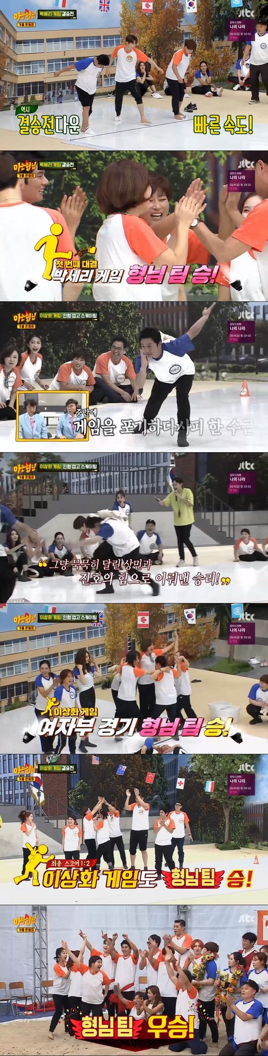 지난 28일 방송된 JTBC'아는 형님'에서는 치열한 승부 끝에 우승을 차지한 형님팀의 모습이 그려졌다.