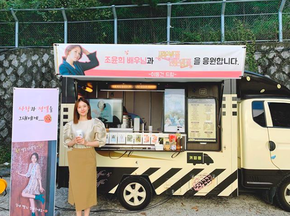 배우 이동건이 아내인 배우 조윤희에게 커피차 선물을 보냈다.