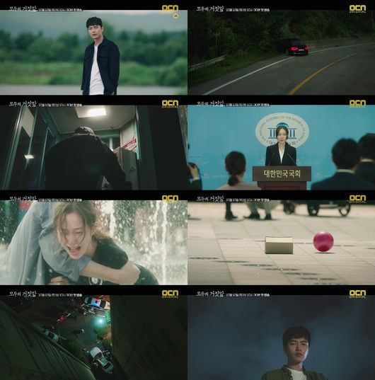 오는 10월 12일 밤 10시30분 첫 방송되는 OCN 새 토일드라마 ‘모두의 거짓말’(극본 전영신 원유정/ 연출 이윤정)은 아버지의 갑작스러운 죽음 이후 실종된 남편을 구하기 위해 국회의원이 되는 여자와 단 한 명의 죽음도 넘길 수 없는 형사의 진실을 좇는 시크릿 스릴러. 지난 28일 공개된 메인 예고 영상은 의문만이 가득한 사건 속 눈빛부터 살아있는 배우들의 연기로 다가올 첫 방송에 대한 궁금증과 기대감을 증폭시켰다.