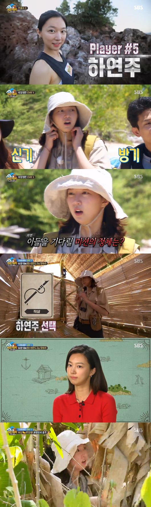 다음으로 60분 내에 필수 생존 도구를 찾는 미션에 하연주는 식량 확보에 중요한 도구인 작살을 선택, 미션지에 적힌 위치 힌트를 받아들고 추리력을 발휘했다. 여기에 IQ 156의 멘사 출신답게 두뇌 플레이에 자신있음을 내비쳤고 힌트를 통해 다양한 연상을 이어가며 도구를 찾기 위해 거침없이 직진해 시청자들을 주목케 했다. 그러나 이내 연속으로 나무에 머리를 부딪히며 색다른 두뇌 플레이를 펼치는가 하면 공에 힌트를 외치는 등 허당 매력으로 웃음을 유발했다.