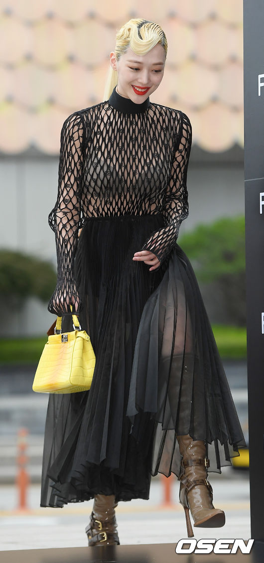 문제는 설리가 몸을 움직일 때마다 발생했다. 예능 프로그램과 SNS를 통해 이미 여러 차례 속옷 미착용에 관대함을 밝혔던 그녀이기에, 이날도 속옷을 입지 않고 있었기 때문.