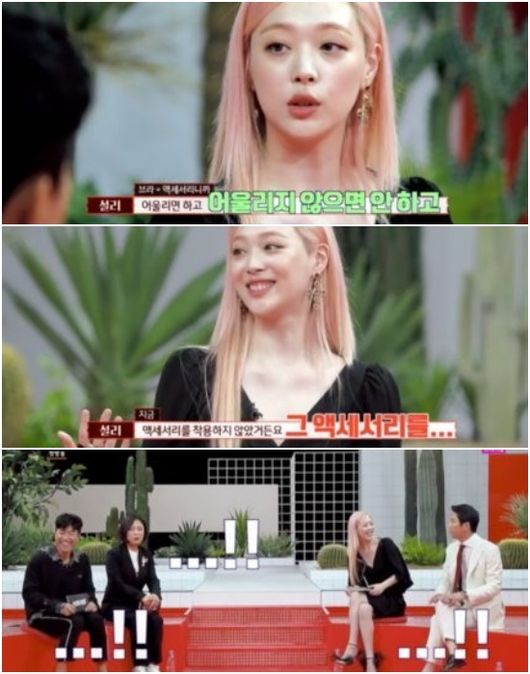 설리가 브래지어 미착용, 이른바 '노브라' 논란에 휩싸인 건 이번이 처음은 아니다. 앞서 몇 차례 이로 인해 논란이 됐고, 설리는 "브래지어는 액세서리다. 어울리면 하고 어울리지 않으면 안 하는 것"이라는 소신을 밝혔던 바다.