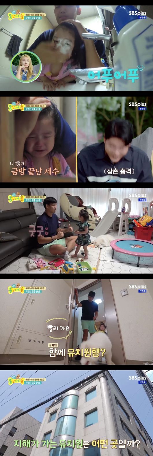 29일 오후 방송된 SBS플러스 ‘개판 5분 전, 똥강아지들'에서는 애견 유치원에 간 하승진과 딸 지해, 반려견 홍시의 모습이 그려졌다.