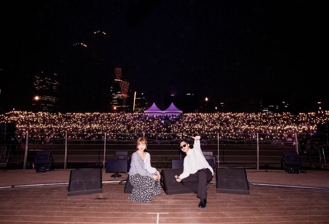 AKMU는 29일 서울 여의도 한강공원 물빛무대에서 야외 청음회 '가을밤의 항해'를 열었다. 청음회에는 팬들을 비롯해 나들이를 나온 가족, 연인, 친구 등 총 3만명에 이르는 관객들이 빈틈 없이 자리를 채웠다.