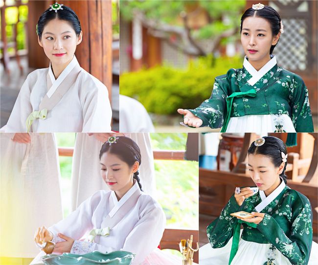 공개된 스틸컷에는 바지와 나무비녀가 아닌, 고운 치마를 입고 붉은 댕기로 머리를 땋은 개똥의 모습은 낯설지만 아름다워 시선을 사로잡는다. 평소 사내보다 더 사내 같은 억척스러운 모습이었지만, 차분하고 우아한 자태로 차를 따르고 있는 것.