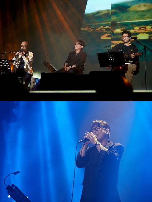 이날 콘서트에는 윤종신의 든든한 음악적 동지인 하림, 조정치가 함께 했다. '신치림'이란 그룹으로 앨범을 냈던 세 사람은 '출국', '이방인', '여기보다 어딘가에' 등을 함께 부르며 관객들과 교감했다.