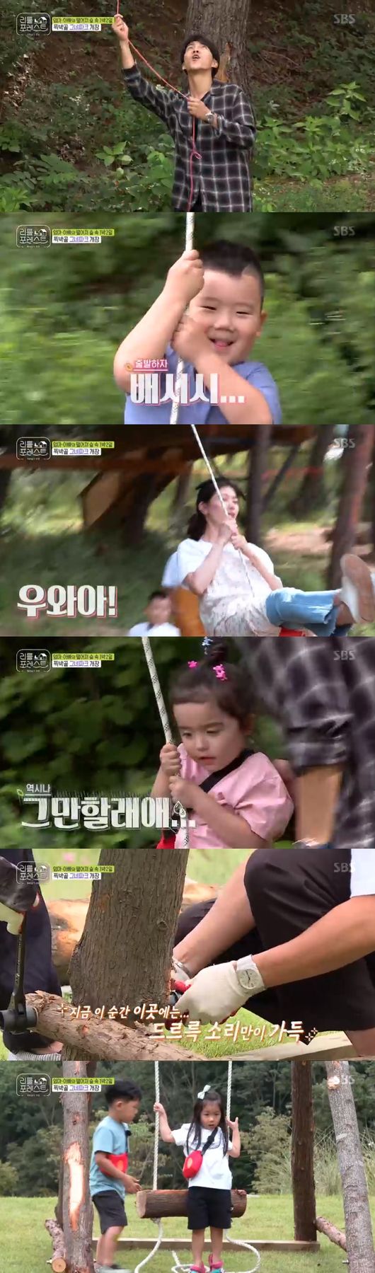 그네가 완성 됐다는 소식을 듣고 정소민이 찾아왔고 두 번째로 탑승했다. 정소민 역시 "너무 재밌다. 짱 재밌다"라며 스릴을 만끽했다. 이어 리틀이들이 차례 차례 그네를 탔다. 하지만 애들이 무서워했고 이내 이승기가 타며 이에 이서진은 "외줄은 아이들에게 너무 무섭다."며 두줄 그네를 만드는데 돌입했다.