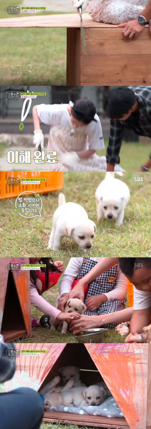 강아지 주인은 강아지들에게 밥 주는 방법을 알려줬고 이어 리틀이들은 "잘 키우겠습니다"라며 강아지들을 태우고 다시 집으로 향했다. 정소민은 톱질을 들고 나와 무언가를 시작했고 이승기와 박나래에게 강아지 집 입구를 만든다며 첫 톱질이라고 말했다. 이승기는 보조로 나서 정소민의 일을 도왔다.