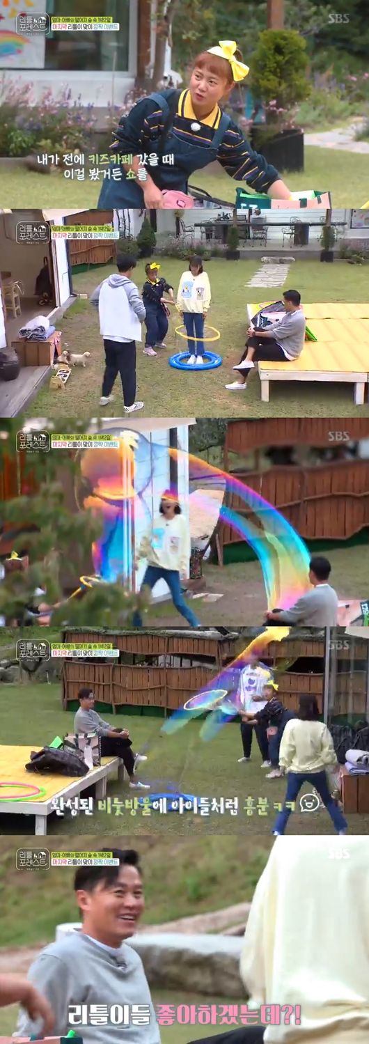 이서진은 “우리 엄마 허리 아파서 잘 걷지도 못 하신다”라고 말해 웃음을 자아냈다. 박나래는 리틀이들을 위해 대형 비눗방울 쇼를 준비했다고 밝혔다. 이어 박나래는 “키즈카페에서 봤는데 정말 어마어마했다”라며 대형 비눗방울을 준비해 보여줬다. 다들 "와아아아~ "라며 아이들처럼 소리를 질렀다. 이어 리틀이들이 좋아할 생각에 즐거워했다.