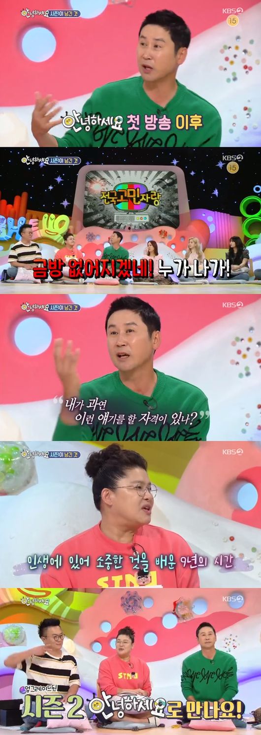 신동엽은 "처음 '안녕하세요'가 했을 때 저 프로그램이 곧 없어질거라고 했다. 우리나라 사람들은 집안 문제를 밖으로 드러내지 않기 때문이다. 하지만 함께 이야기하고 공감하는 시간이 만들어진 것 같다"라고 말했다.