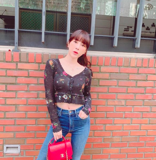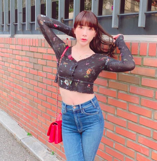 서인영이 청바지를 입고 개미 허리를 과시했다.