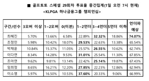 1번 최혜진 언더파 가능성 가장 높게 꼽아…2일(수) 오후 9시 50분 마감