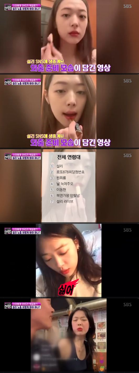 SNS로 인해 뜨거운 감자에 오른 설리에 소식을 전했다. 설리는 SNS로 최근 외출 준비 모습이 담긴 영상이 공개, 논란에 이유는 노출때문이었다. 편안한 잠옷 차림으로 머리를 손질한 설리가 몸을 움직일 때마다 신체 일부가 노출된 것이다.