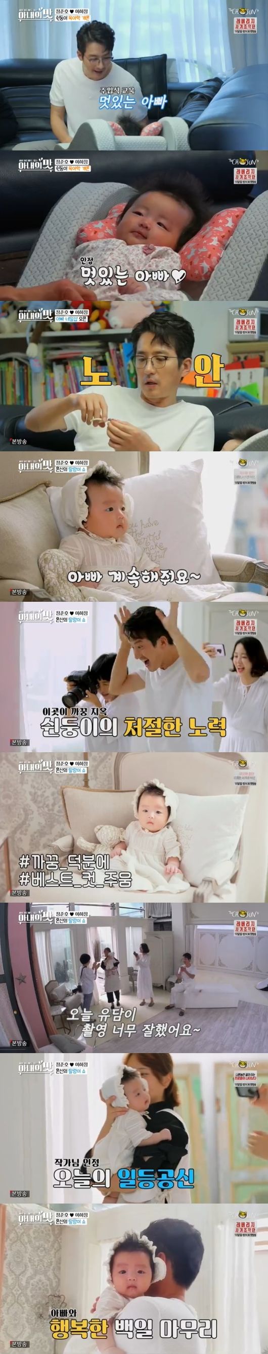 정준호, 이하정 부부의 둘째 딸 유담이는 백일을 맞았고, 정준호는 "멋있는 아빠"라는 멘트를 주입식 교육으로 계속 반복했다.