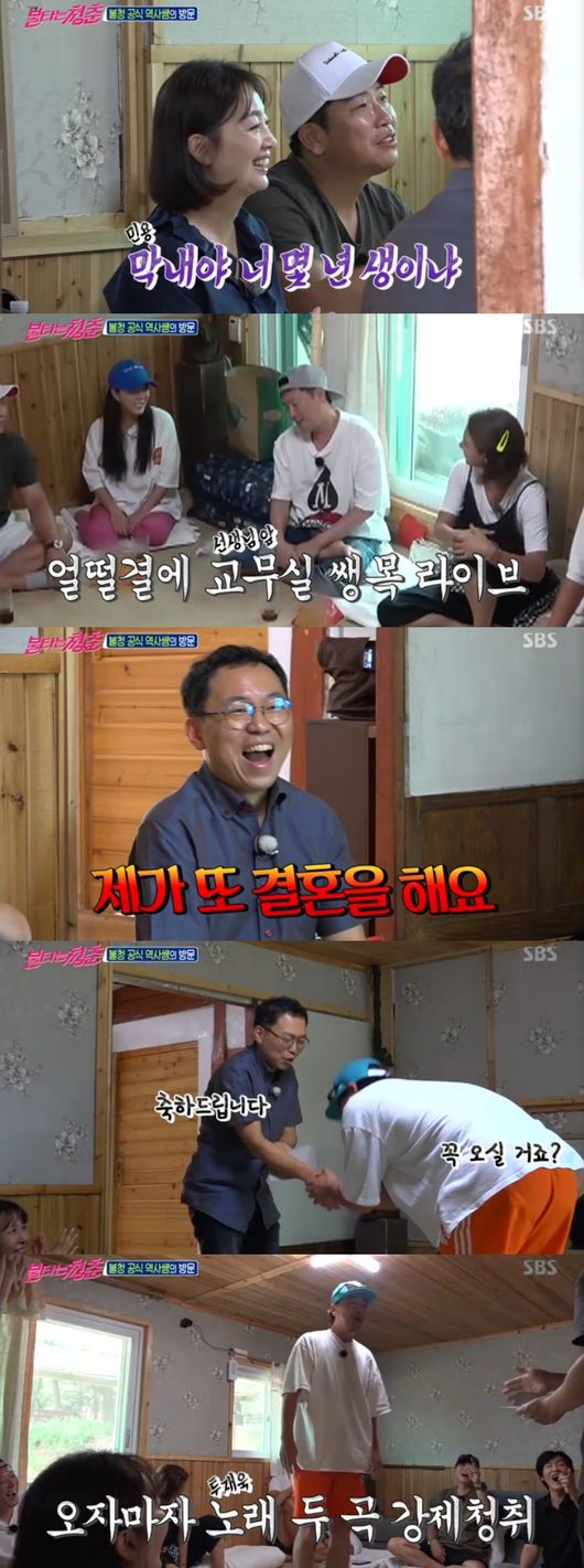 강화도 유적지를 추천하며 역사에 대해 얘기가 오고간 가운데 임재욱은 "여기도 사건이 있다, 제가 또 결혼을 해요"라며 기승전 청첩장을 전달해 웃음을 안겼다.