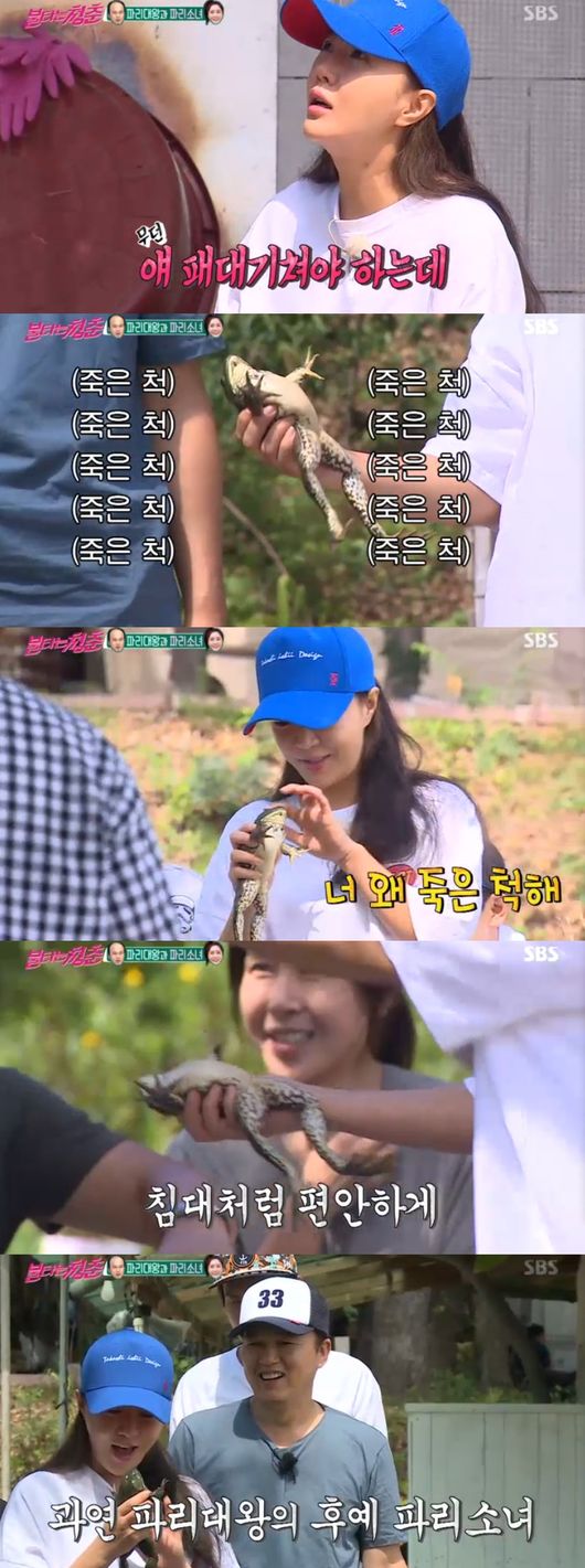 이의정은 바로 황소 개구리를 한 손으로 잡더니 이의정은 "얘 자연으로 보내주면 안 되냐"며 질문, 장난감 다루듯 가볍게 만지는 모습이 모두를 놀라게 했다.