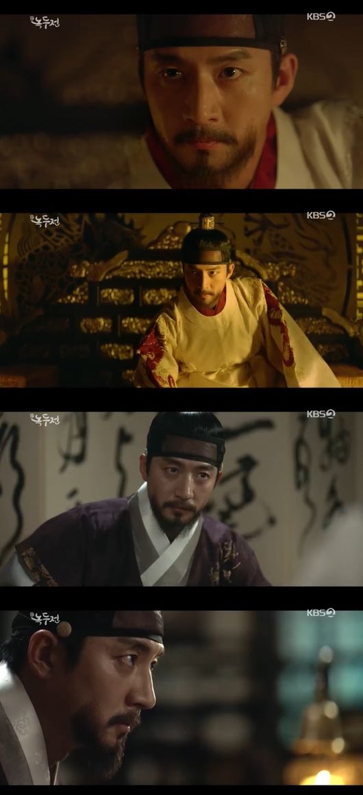 정준호는 1일 방송된 KBS 2TV 월화드라마 '조선로코-녹두전(극본 임예진 백수연, 연출 김동휘 강수연)' 2화에서 심복 허윤(김태우 분)을 의심하며 보는 이들의 심장을 졸이게 만들었다.