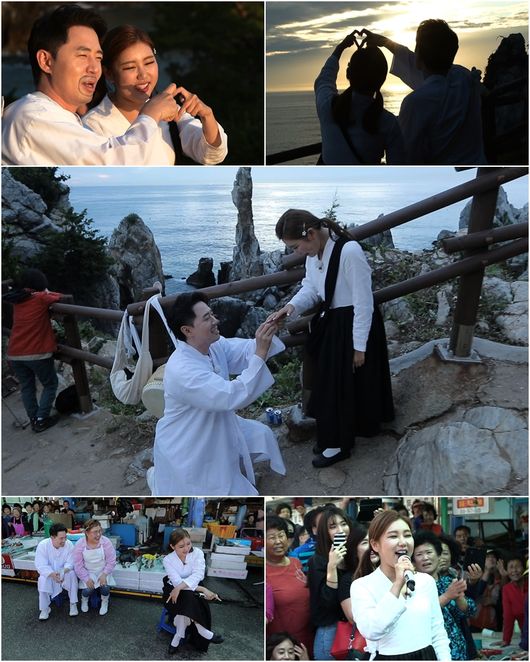 그리고 붐은 일출을 기다리며 소원 빌 준비를 하던 송가인에게 뜬금없이 “내 마음속의 해는 가인이 너야”라며 설렘 폭탄 고백을 던지는가 하면, 그림 같은 동해바다를 배경으로 무릎을 꿇고 직접 준비한 특별한 반지를 송가인의 손가락에 끼워주는 돌발 프러포즈를 펼쳐 송가인은 물론 지켜보던 관광객들까지 놀라게 했다. 이후 프러포즈를 받은 송가인 역시 아이를 좋아하는 여자가 이상형이라는 붐의 말에 “나 아이 엄청 좋아하는데”라고 대답하는가 하면, “아이는 둘만 낳아도 될 것 같다. 쌍둥이를 낳자”라며 지난번 소양강 철벽녀를 벗어던지고, 그린 라이트를 반짝여 주위를 달달하게 만들었다.