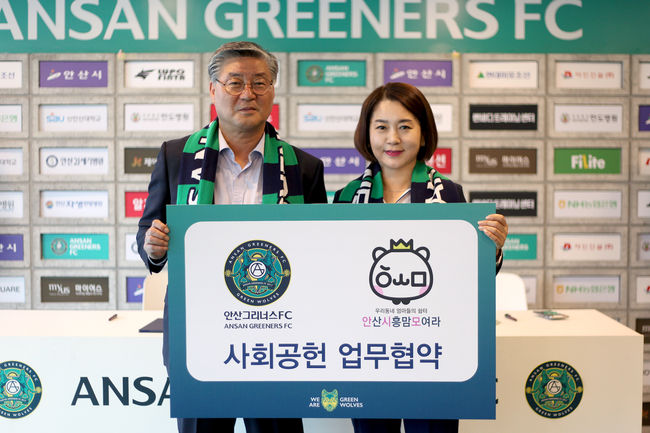 안산 그리너스 FC가 지난 2일 와~스타디움 미디어실에서 네이버카페 ‘안산 시흥 맘 모여라’(이하 안시모)와 사회공헌 업무협약을 체결했다.