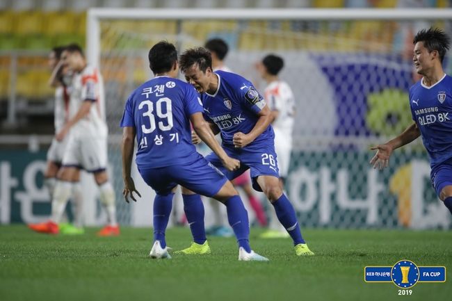 수원은 1차전 원정 경기서 0-1로 패하며 벼랑 끝에 몰렸지만 2차전 홈 경기서 반전을 이뤄냈다. 수원은 앞서 승부차기 끝에 상주 상무를 꺾고 결승에 올라온 대전 코레일(내셔널리그)과 다음달 홈 앤 어웨이로 FA컵의 주인을 가린다.