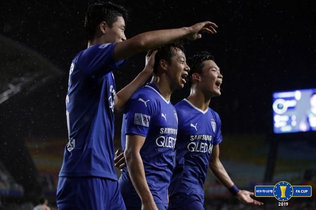 수원은 1차전 원정 경기서 0-1로 패하며 벼랑 끝에 몰렸지만 2차전 홈 경기서 반전을 이뤄냈다. 수원은 앞서 승부차기 끝에 상주 상무를 꺾고 결승에 올라온 대전 코레일(내셔널리그)과 다음달 홈 앤 어웨이로 FA컵의 주인을 가린다.