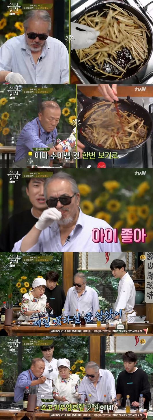 2일 방송된 tvN '수미네 반찬'에서는 할배특집 3주차로 꾸며진 가운데 김수미가 소고기 우엉조림 만들기에 나섰다.