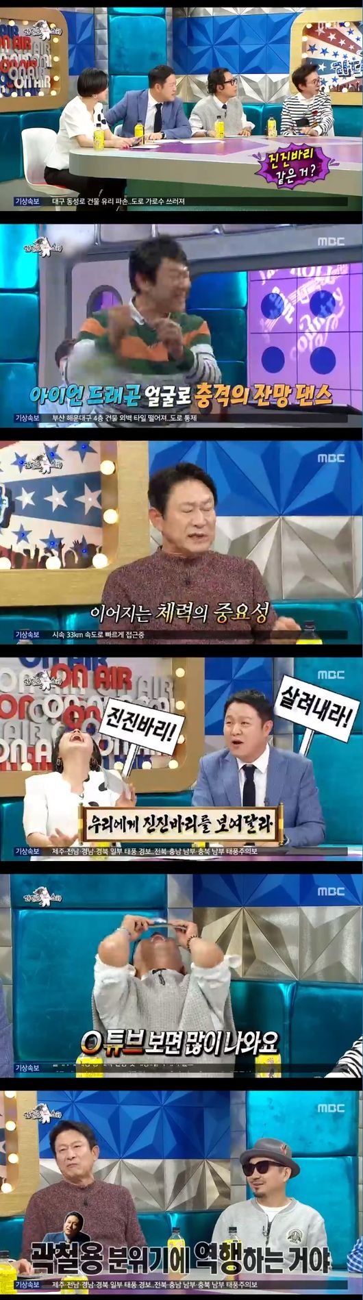 이후 MC들은 김응수에게 진진바리 춤을 다시 볼 수 있냐 물었고 김응수는 "그건 잊어라. 옛날 이야기잖냐"라며 피했다. 이에 김구라는 그럼 다른 재미있는 이야기가 있냐고 질문했다.