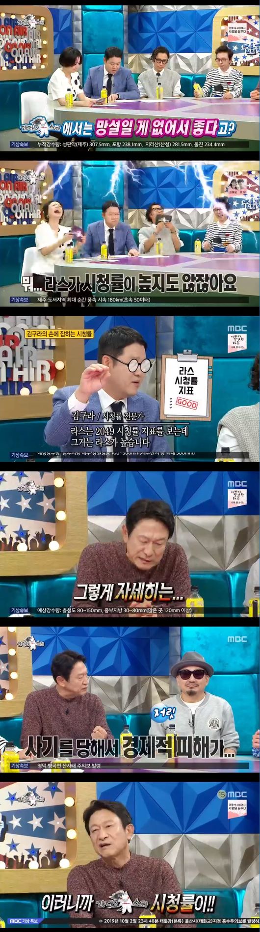 이어 김응수는 "'라디오스타'는 편하다. 내가 김구라 눈치를 보겠냐, 김국진 눈치를 보겠냐 라스가 솔직히 시청률도 낮지 않냐"라며 돌직구를 날렸다. 이에 당황한 김구라는 2049 시청률이 그렇게 낮지 않다고 대답했다. 이에 김응수는 그것까진 잘 모르겠다고 대답했다.