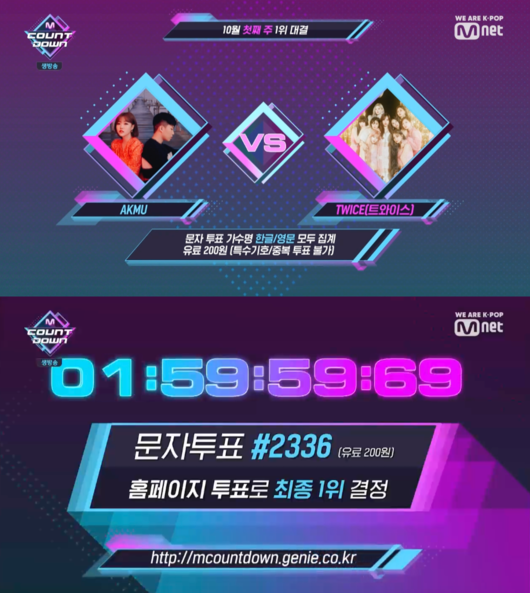 3일 방송된 엠넷 ‘엠카운트다운’에서 10월 첫째 주 1위 후보가 베일을 벗었다. ‘어떻게 이별까지 사랑하겠어, 널 사랑하는 거지’의 악동뮤지션과 ‘필 스페셜’의 트와이스가 주인공.