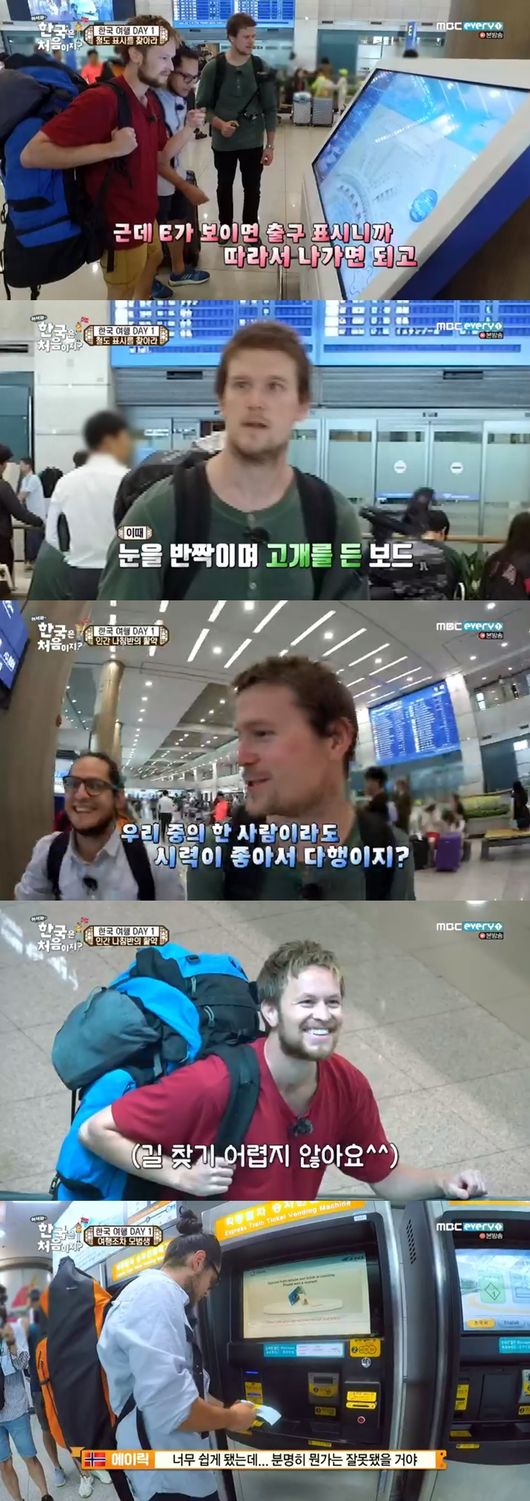 이날 보드와 파블로, 에이릭은 캐리어도 없이 전부 무거운 배낭을 매고 입국해 눈길을 끌었다. 친구들은 공항에서 숙소로 가는 철도를 찾기 위해 지도를 살폈다. 하지만 한국어로 써 있어 알 수 없었고 주위를 살피던 보드가 마침내 길을 찾아냈다.