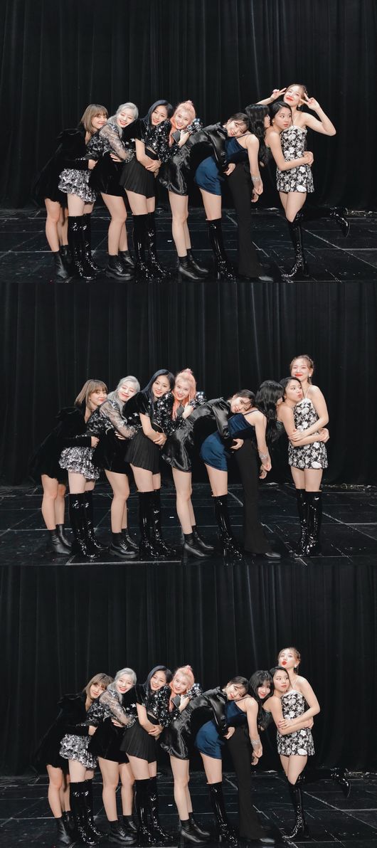 함께 올린 사진에서 트와이스 멤버들은 서로의 허리를 꼭 껴안으며 일렬로 서 있다. 맨 끝에 선 나연은 팬들에게 입술 뽀뽀를 보내기도. 얼굴 가득 웃음꽃을 피운 트와이스 덕에 팬들의 입가에도 미소가 번졌다.