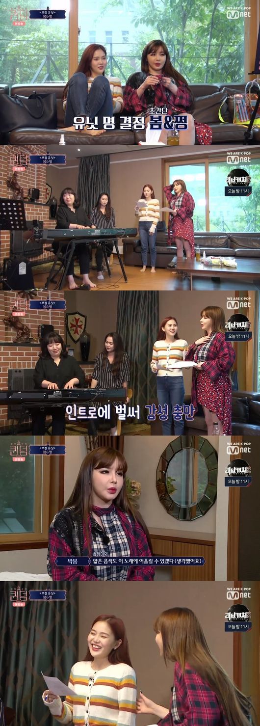 이날 박봄과 효정은 이하이의 '허수아비'로 노래를 정했다. 효정은 "제 보컬의 감성을 보여주고 싶은데 그걸 보여줄 수 있을 것 같다"고 말했고 유닛명은 봄&쩡으로 정했다. 이어 효정의 리드로 인사법까지 순식간에 만들어냈다.