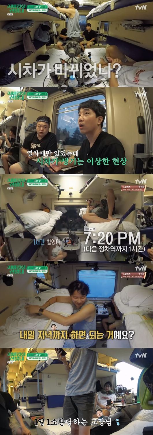 열차 안은 시차 변경으로 혼란이었다. 시베리아 횡단열차 안에서 시간은 총 7번이 바뀌었고 그때마다 대원들은 혼란스러워했다. 갑작스럽게 한 시간이 더 생기자 이선균은 "하정우 뒷담화를 하자"고 제안했다. 이에 김남길은 "내일까지 하면 되는거냐"라고 응수해 주위를 웃음바다로 만들었다.